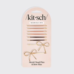 - Comes in an 8-piece set with 6 neutral-hued bobby pins in our unique cloud design. plus 2 gold petite bow bobby pins